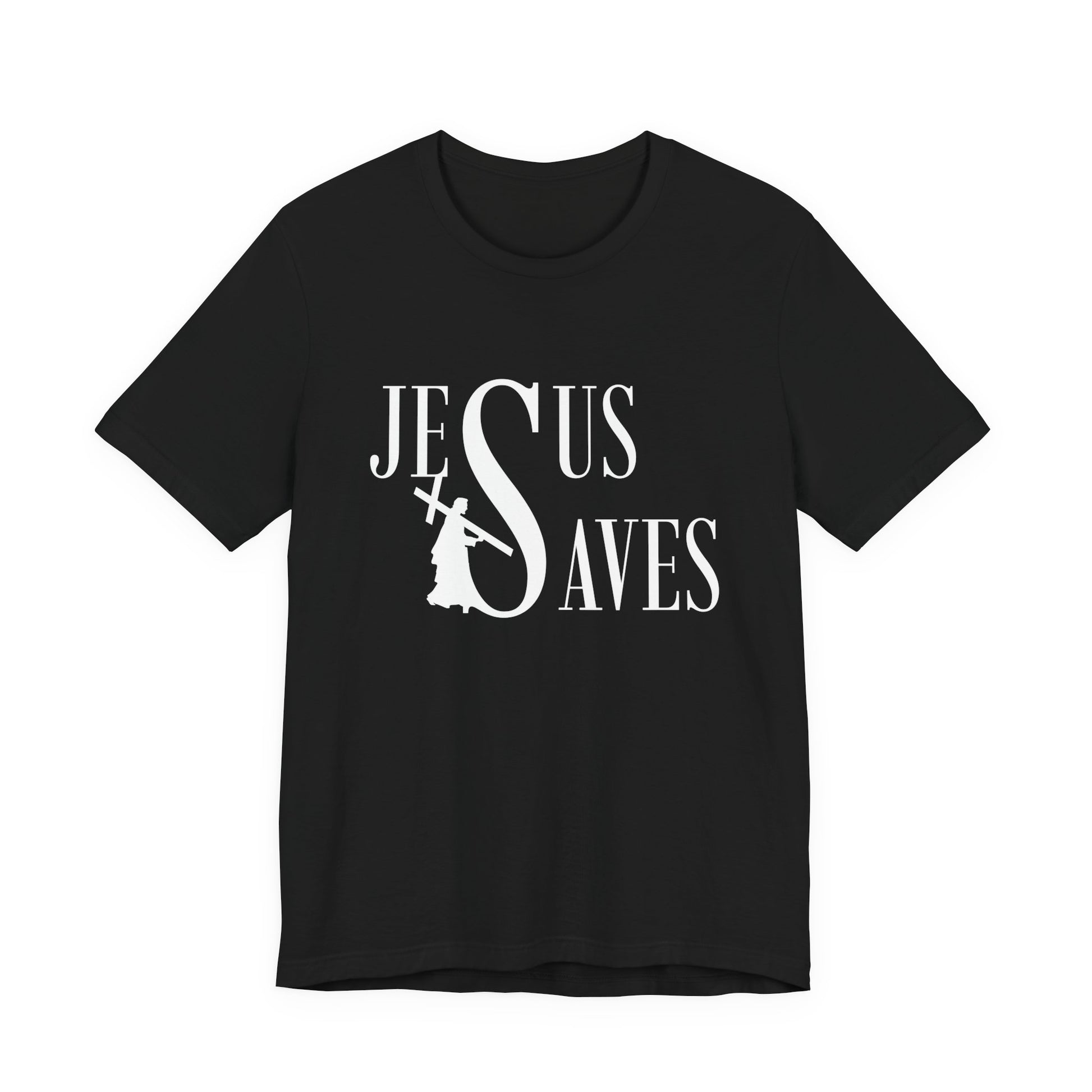 Jesus Saves Christian T-Shirt - Faith-Based Cross Design